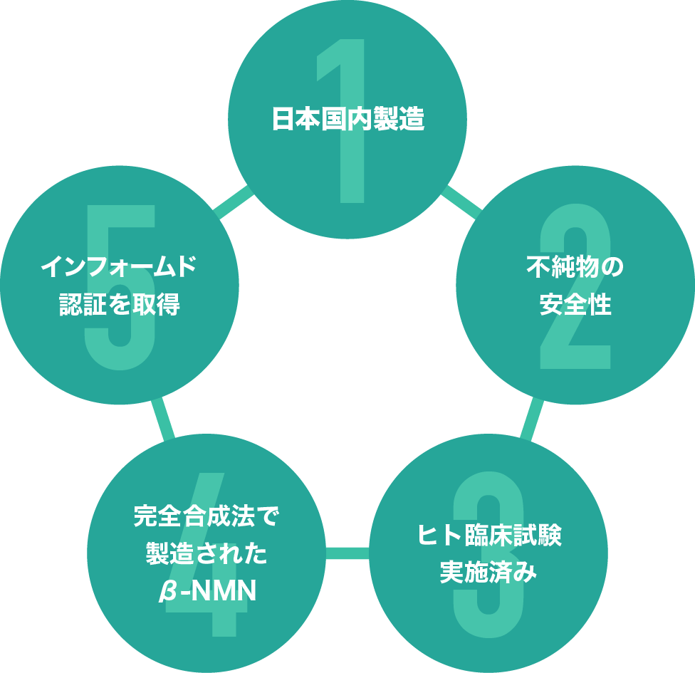 原料には厳しい安全性試験を実施した高品質の国産NMNを使用。